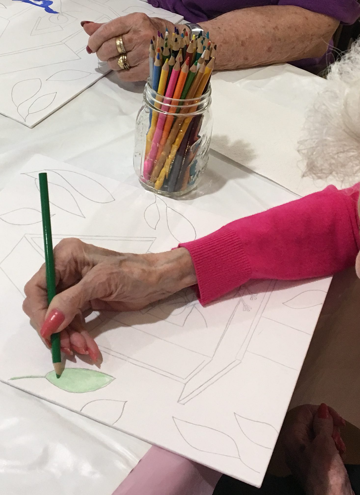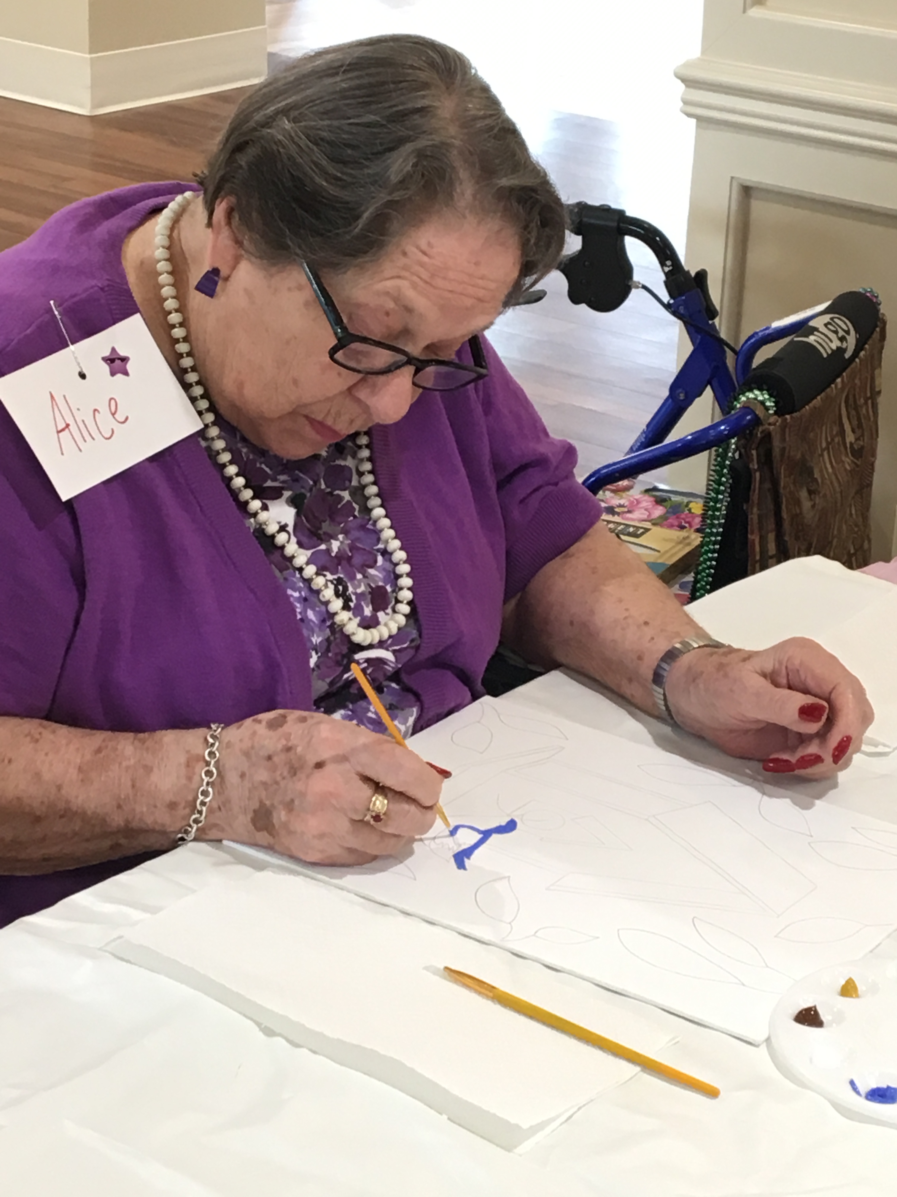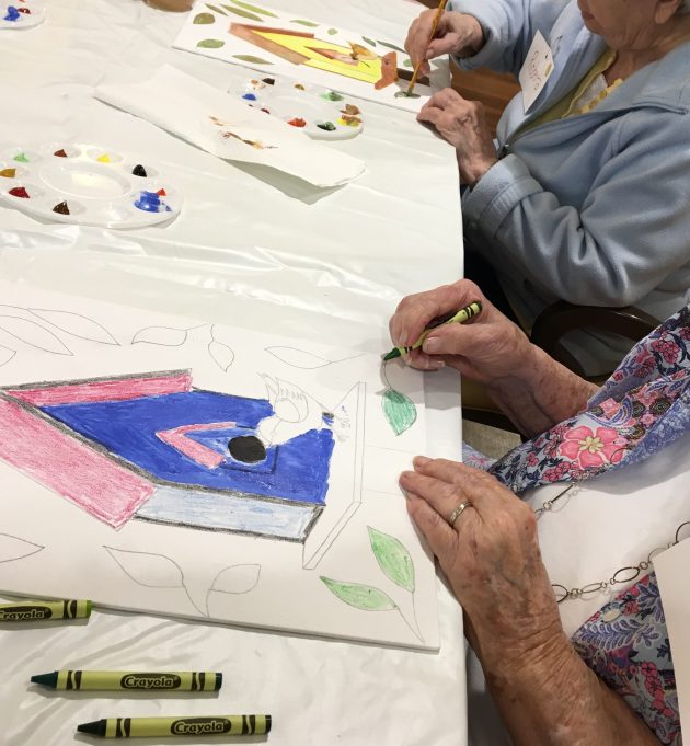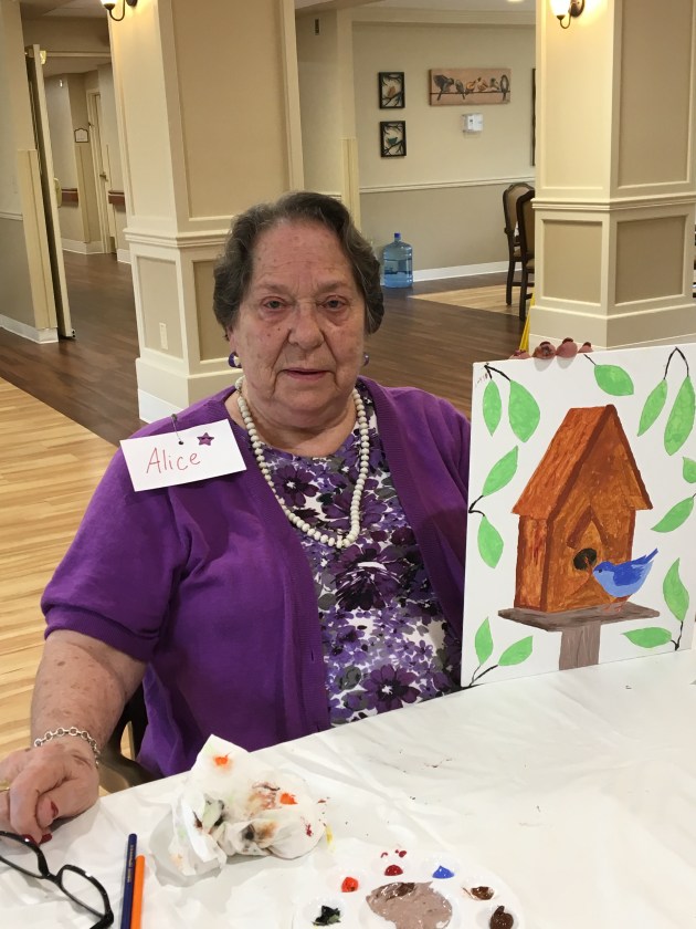 In my last blog post, I promised to keep you updated on the art class at my Mom’s assisted living facility. We have had two classes since that last post. Not many words today, I’m going to let the pictures from our time together speak for themselves…